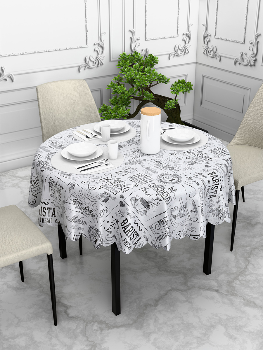 Нарядный влагостойкий декор с современным принтом — универсальный вариант как для повседневного применения, так и для особых торжественных ситуаций, например, семейных праздников или вечеринок с друзьями. Большая водонепроницаемая скатерть подходит для сервировки практически любого обеденного стола: она принимает его форму и предотвращает скольжение, а значит, и случайное опрокидывание посуды. Грязеотталкивающая пропитка избавляет от необходимости удалять сложные въевшиеся пятна. Это эстетичный и практичный вариант для кормления маленьких детей, еще не умеющих аккуратно принимать пищу. Для того чтобы убрать появившиеся загрязнения, достаточно протереть многоразовую кухонную скатерть сухой или влажной губкой.
