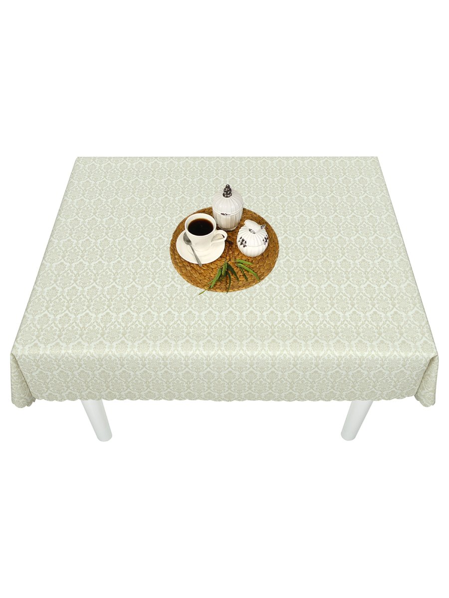 Влагонепроницаемая хлопковая скатерть с тефлоновым покрытием и красивым рисунком — это стильный и практичный аксессуар для кухни и столовой, зала и гостиной, и незаменимый атрибут новогоднего, рождественского и пасхального декора. Благодаря водоотталкивающей пропитке моющийся столовый текстиль из итальянских премиальных тканей станет идеальным вариантом для повседневного использования, а кружево и современный принт делают его подходящим и для особых торжественных ситуаций, например, для сервировки обеденного стола на пасху, день рождения или новый год. Светлая текстильная непромокайка из влагостойкого материала с узором в цветочек визуально увеличивает пространство, поэтому легко вписывается в любой интерьер и добавляет ему уюта, а термостойкое покрытие из тефлона позволяет ставить на него горячую посуду.