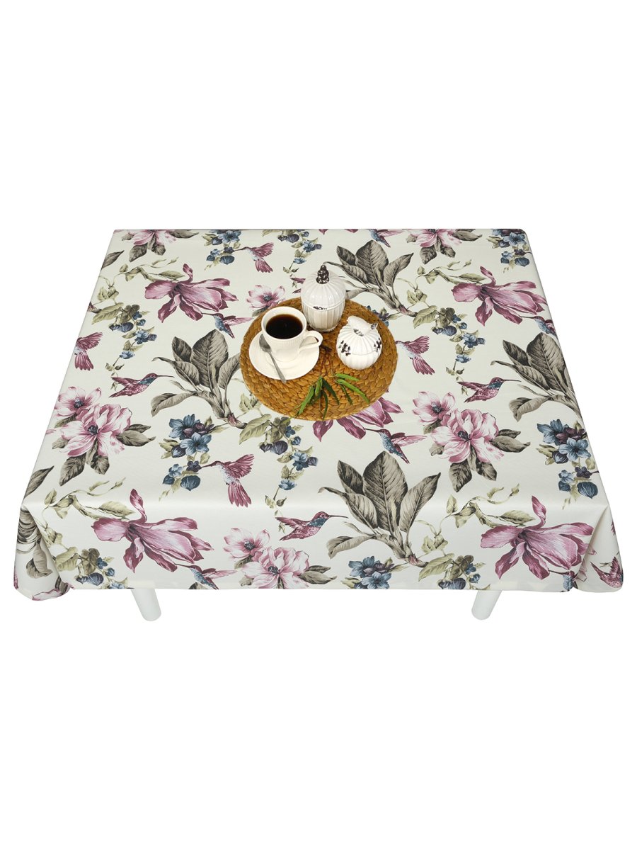 Влагонепроницаемая хлопковая скатерть с тефлоновым покрытием и красивым рисунком — это стильный и практичный аксессуар для кухни и столовой, зала и гостиной, и незаменимый атрибут новогоднего, рождественского и пасхального декора. Благодаря водоотталкивающей пропитке моющийся столовый текстиль из турецких премиальных тканей станет идеальным вариантом для повседневного использования, а кружево и современный принт делают его подходящим и для особых торжественных ситуаций, например, для сервировки обеденного стола на пасху, день рождения или новый год. Светлая текстильная непромокайка из влагостойкого материала с узором в цветочек визуально увеличивает пространство, поэтому легко вписывается в любой интерьер и добавляет ему уюта, а термостойкое покрытие из тефлона позволяет ставить на него горячую посуду.