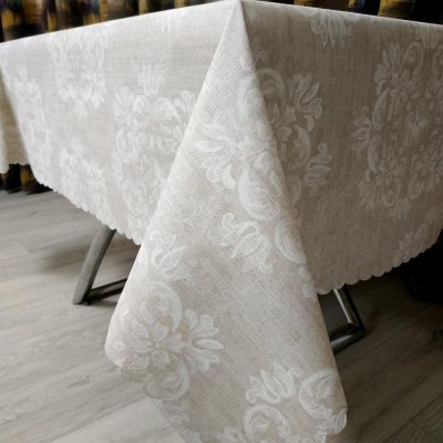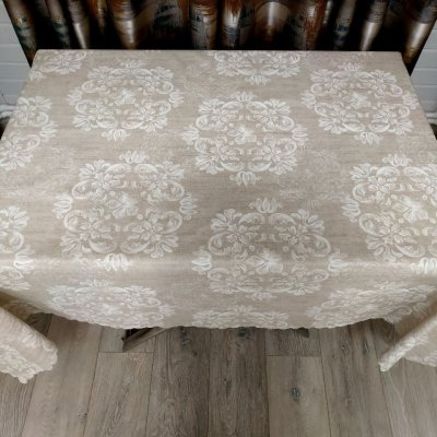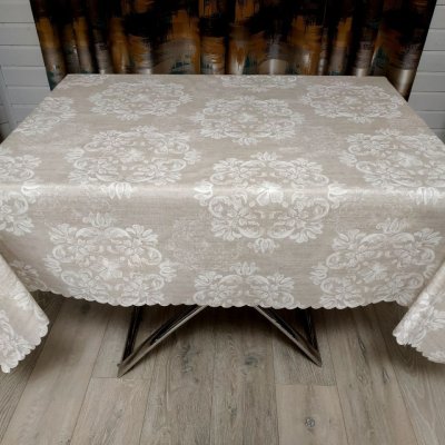 Влагонепроницаемая хлопковая скатерть с тефлоновым покрытием и красивым рисунком — это стильный и практичный аксессуар для кухни и столовой, зала и гостиной, и незаменимый атрибут новогоднего, рождественского и пасхального декора. Благодаря водоотталкивающей пропитке моющийся столовый текстиль из китайских премиальных тканей станет идеальным вариантом для повседневного использования, а кружево и современный принт делают его подходящим и для особых торжественных ситуаций, например, для сервировки обеденного стола на пасху, день рождения или новый год. Светлая текстильная непромокайка из влагостойкого материала с узором в цветочек визуально увеличивает пространство, поэтому легко вписывается в любой интерьер и добавляет ему уюта, а термостойкое покрытие из тефлона позволяет ставить на него горячую посуду.